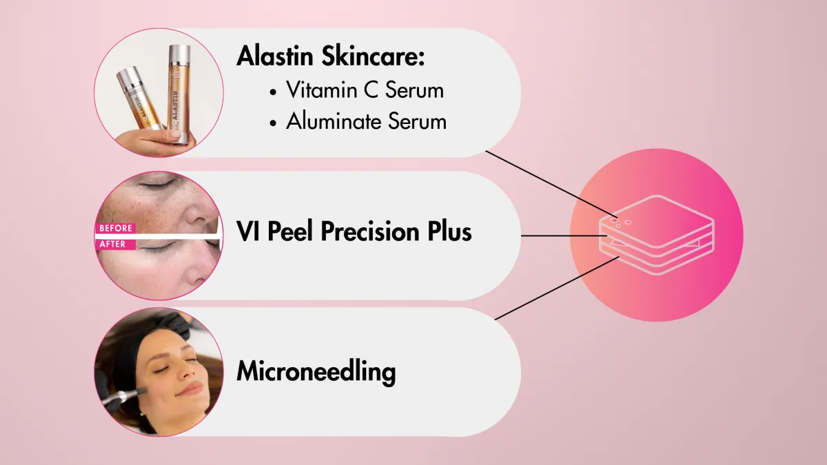 By pairing brightening serums, a medical-grade VI Peel, and microneedling, this treatment helps fade discoloration, smooth texture, and restore a radiant, even-toned complexion.