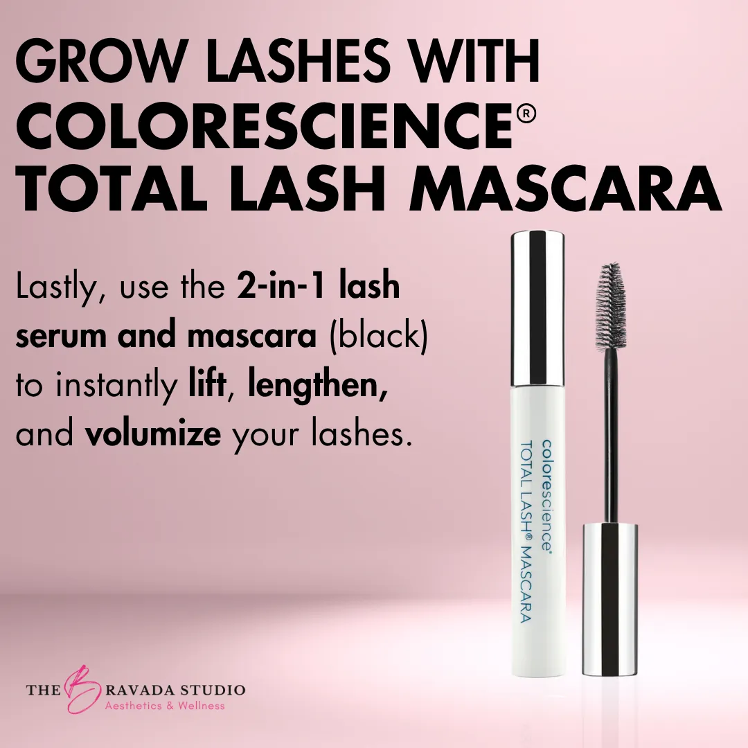 Lush, voluminous lashes can enhance your eyes and make them look bigger and more youthful. The Colorescience® Total Lash Mascara is a 2-in-1 lash serum + mascara that instantly: